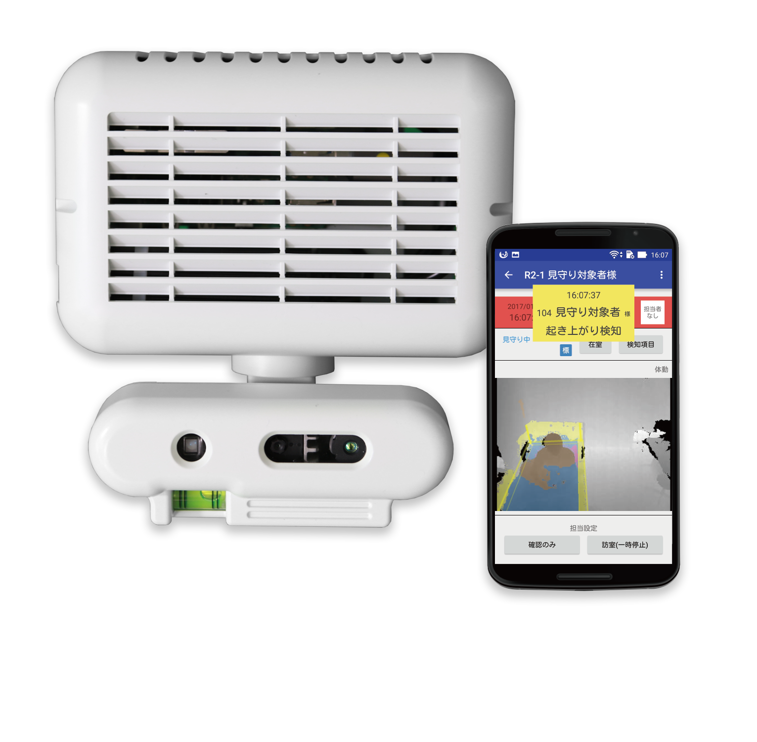 | 概要 | ■シルエット型の見守り装置です。 業界トップレベルの速さと精度で、転倒回数48%減少、ケア時間30%減少に貢献します。 ■3つの特徴 1. 転倒事故の予防 ・転倒につながる危険動作(起上り、端坐位など)を、正確にリアルタイムに検出し、スタッフのスマホに、シルエット画像と音声で通知します。 2.介護・看護の質の向上 ・危険度に応じた作業の優先順位づけができるため的確な見守りが可能です。 ・誤報が少なくリアルタイムに通知されるため、安心して他の作業に注力できます。 ・通知時のシルエット動画を保存し、あとで確認できるため、転倒事故などが発生した場合でも、再発防止措置の検討に役立ちます。 3. スタッフの負荷の軽減 ・スマートフォンで離れていても居室の状況をいつでも確認できます。 ・多数の介護記録ソフトとシステム連携しているため、レポート作成の負荷を軽減できます。 ■シルエット画像なので、プライバシーにも配慮しています。 ■状態検知センサー(オプション)を追加することで、利用者の状態も確認できます。 ■介護ロボットの補助金、助成金対象商品です。 |